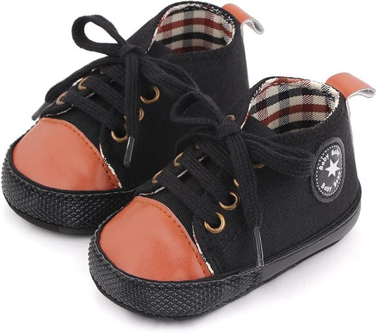 Unisex Baby Boys Girls Shoes, Newborn Infant Non-Slip Canvas Denim High Top Sneakers, Toddler First Walkers Shoes