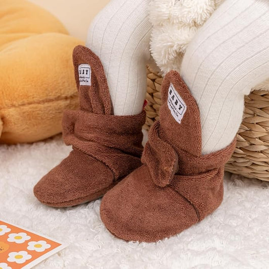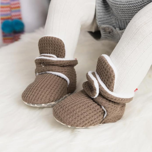 Sawimlgy Newborn Infant Baby Girl Boy Cotton Booties Stay On Sock Slippers Soft Bedroom Shoes Non-Skid Ankle Boots With Grippers Toddler Crib Warm Shoe First Walker Birthday Shower