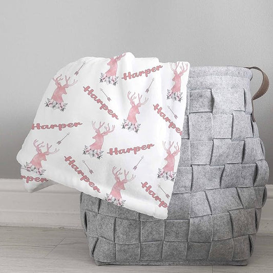 Girls Love A Monogram Personalized Baby Deer Throw Blanket with Name-Custom Kids Hunting Blankets for Girls - Kids Blanket Personalized Baby Blankets for Girls