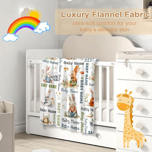 Ship Next Day, Personalized Baby Blanket – Printed in USA, Custom Baby Blanket for Boys & Girls, Baby Blanket with Name, Baby Shower, Easter, Christmas, Birthday Newborn & Toddler Gifts (Style 20)