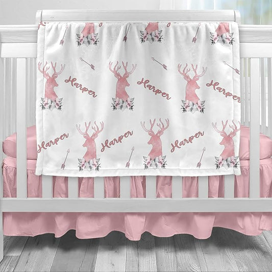 Girls Love A Monogram Personalized Baby Deer Blanket with Name-Custom Baby Hunting Blankets for Girls - Baby Blanket Personalized Baby Blankets for Girls