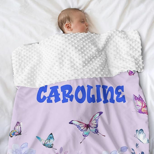 Personalized Baby Blanket for Girls Butterfly Custom Baby Blankets with Name Dotted Backing Customized Gifts for New Mom Customize Baby Blanket for Kids Newborn Birthday