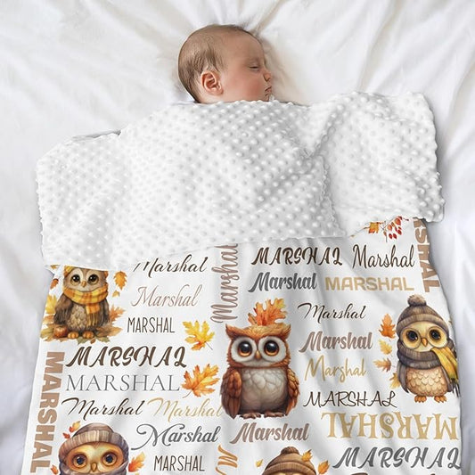 Personalized Baby Blanket for Boys Girls Owl Custom Baby Blankets with Name Dotted Backing Customized Gifts for New Mom Customize Baby Blanket for Kids Newborn Birthday