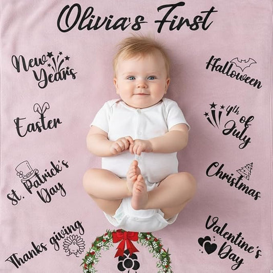 Personalized Baby Blanket for Boys and Girls, Customized Baby Milestone Blankets, Custom Toddler Name Blanket Gifts for Birthday, Christmas, Easter, Kids Photo Props