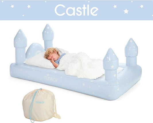 FUNBOY Kids Blue Castle Sleepover Travel Bed & Air Mattress. Perfect for Sleepovers. Includes Carrying Storage Bag, Twin