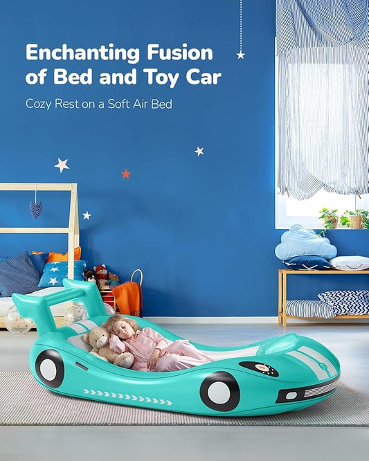 QPAU Inflatable Kids Bed, Toddler Travel Bed with Sides, for Camping, Traveling, Hotel, or Home Use, Hand Pump Included (Cyan)