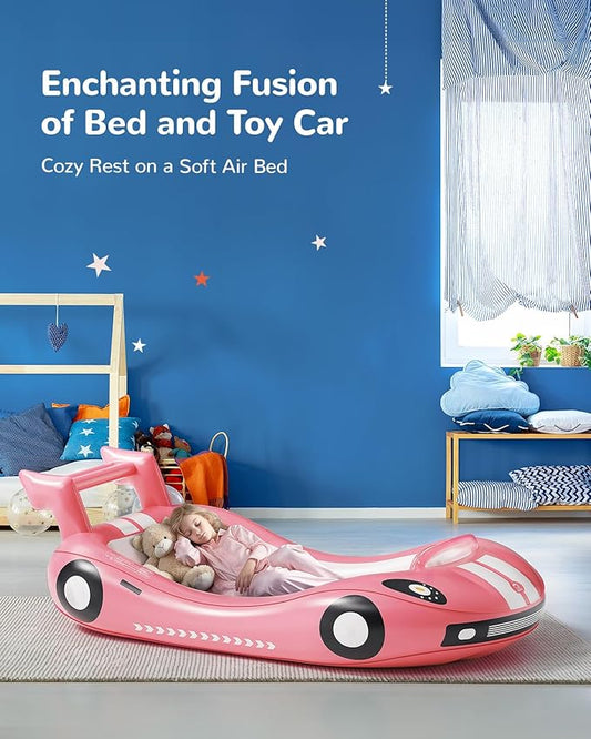 QPAU Inflatable Kids Bed, Toddler Travel Bed with Sides, for Camping, Traveling, Hotel, or Home Use, Hand Pump Included (Pink)