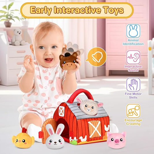 Baby Toys 6-12 Months: Plush Surprise Barn with Stuffed Farm Animals, Rattle, Crinkle Paper, Mirror, Busy Montessori Toys for Babies, Infant, Newborn, Sensory Toys for Toddlers 1-3