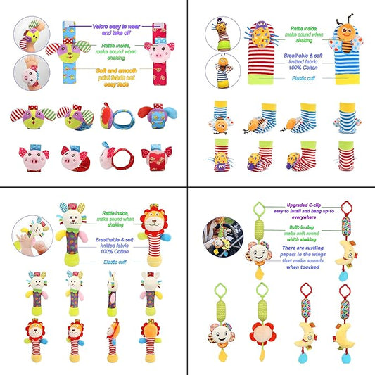 Bloobloomax Wrist and Foot Rattles - Hanging and Hand Bracelet Rattles, Ankle Socks for Newborns and Infants (12pcs)