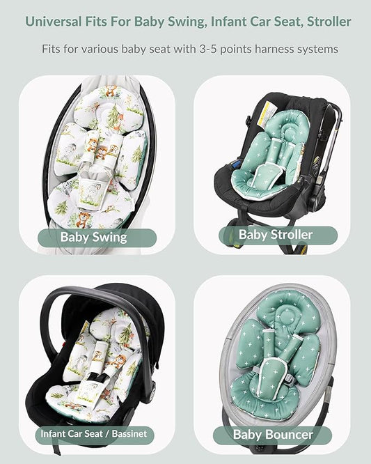 Generic Infant Car Seat Insert Compatible with Mamaroo Swing & Graco Swing and Infant Car Seat, Newborn Insert Baby Head Body Support, Reversible Design, Breathable Soft Fabric, 1Pcs - Green Woodland