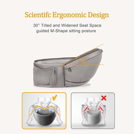 Baby Hip Carrier - Hip Carrier for Baby with Baby Safety Strap - Toddler Carrier 7-45 lbs - Ergonomic Infant Holder Baby Carrier with Hip Seat Large Capacity Pockets(Light Grey)