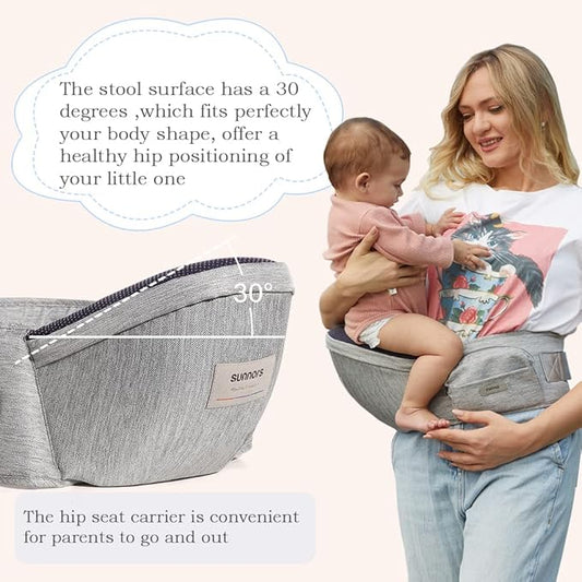 Baby Carrier with Adjustable Strap and Pocket, Ergonomic Hip Holder for Newborns & Toddlers (Light Grey)