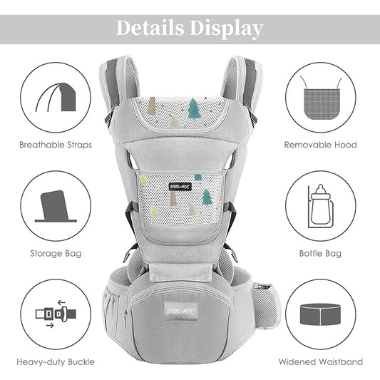 Baby Carrier Newborn to Toddler - Debark Baby Carrier with Hip Seat, 6-in-1 Adjustable Detachable Ergonomic Infant Carrier for Babies from 0-36 Months, Ideal for Baby Travel Essentials (Grey)