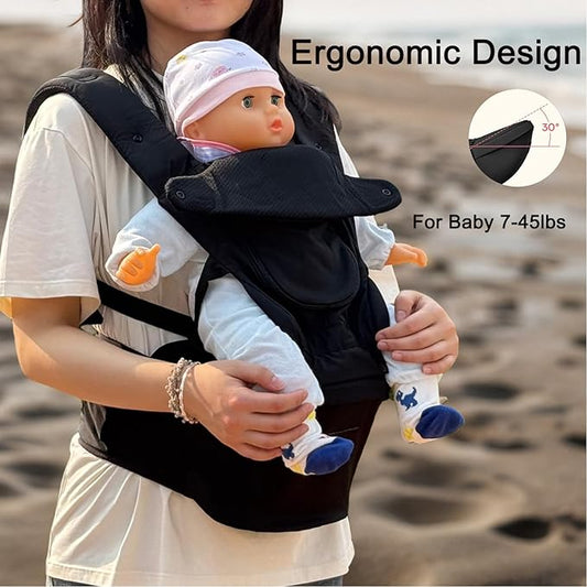 Baby Hip Carrier - Hip Carrier for Baby with Baby Safety Strap - Toddler Carrier 7-45 lbs - Ergonomic Infant Holder Baby Carrier with Hip Seat Large Capacity Pockets(Black)