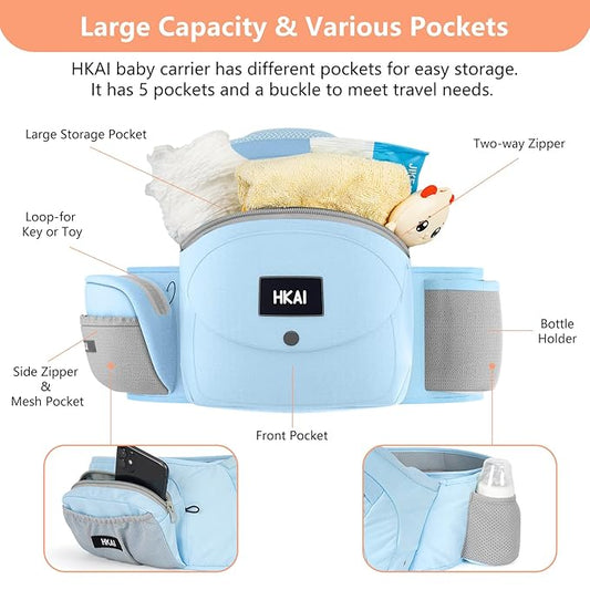 HKAI Baby Hip Carrier, Mom's Choice Award Winner, Adjustable Waistband & Breathable Mesh, Ergonomic Carrier with Non-Slip Hip Seat Surface for Newborns & Toddlers, Light Blue