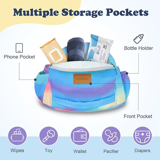 Baby Carrier with Hip Seat, Enhanced Safety, Hands-Free Support for Newborn to Toddler (0-66 lbs), Multiple Pockets, Ergonomic, Adjustable Waistband – Rainbow
