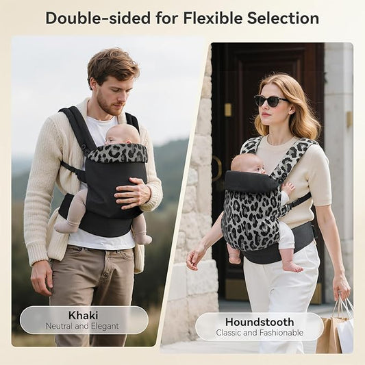 Reversible Baby Carrier – Black Solid & Leopard Print; Lightweight, Cooling & Breathable Lyocell Fabric; Ergonomic Lumbar Support and Quick Hands-Free Wear for Newborn to Toddler (7–44 lbs)