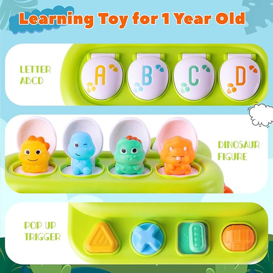 Cause and Effect Pop Up Dinosaur Baby Toy 6-12 Months, Sensory Early Learning Fine Motor Skills Toy for Toddler Boy Girl 9 11 Months