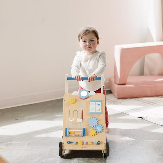 Beright Wooden Baby Walker, Baby Push Walker, Weather Theme, Learning Activity Center for Boys and Girls, Sit-to-Stand Push Toys, Upgraded