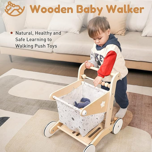Wooden Baby Walker Wheels,Baby Push Walker for Babies 12 Months+ Montessori,Toddler Walker Push Toy Wooden Activity Walker for Boy,Walking Toys12 Months+ Learning to Walk