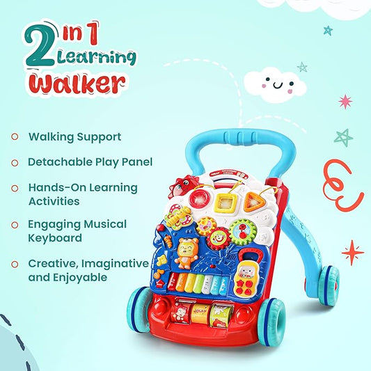 YOLAY Baby Walker Push with Wheels, Sit-to-Stand Walker for Baby Boy and Girl 6-12 Months with Detachable Play Panel, Stable Handle, Early Learning Activity for Kids - Blue
