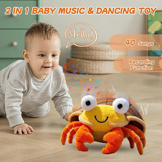 Baby Crawling Toys 12-18 Months - Musical Crawling Crab Plush Toy with 40+ Songs, Recording Features - Dancing Walking Moving Bouncing Learning Toy for 1 Year Old Boy Girl Babies Toddlers