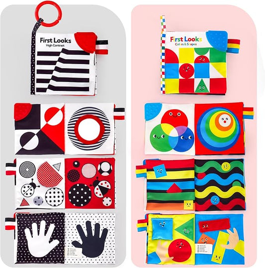 hahaland Baby Books 0-6 Months - 2PCS Infant Toys 0-6m Tummy Time Babies Toy Newborn Toys High Contrast Visual Development Sensory Book Baby Girl Boy Shower Christmas Birthday Gift Stocking Stuffers