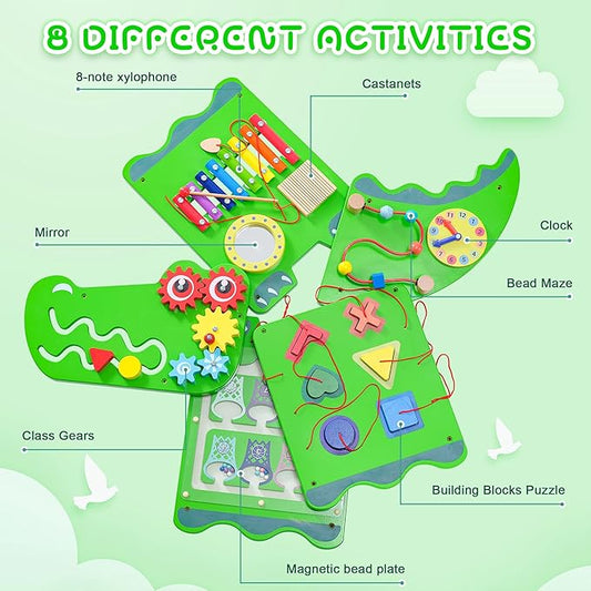 Crocodile Sensory Toys Activity Wall Panels, Educational Montessori Busy Board for Toddlers, Activity Cube - Sensory Wall, Wooden Learning Toys, Interactive Toy-Green