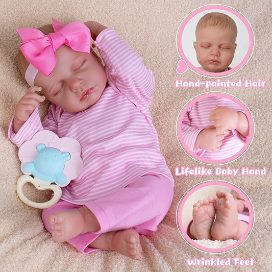 Reborn Baby Dolls 20-Inch Soft Body Realistic Baby Doll That Look Real Life Baby Girl Dolls with Hand-Painted Details Lifelike Sleeping Baby Doll with Clothes Toy Gift Set for Kids Age 3+