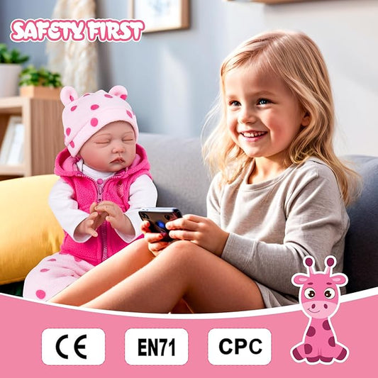 Realistic Baby Doll 22-Inch Lifelike Newborn Baby Doll Soft Cloth Body Real Life Baby Dolls with Clothes and Toy Accessories, Ideal Christmas Birthday Gift Set for Kids Age 3+