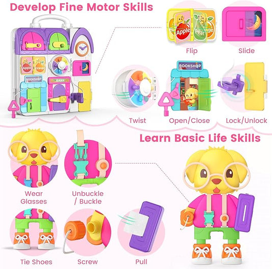 GOLIYEAN Montessori Busy Book for Toddlers 1-3, Busy Board Montessori Toys for 1 Year Old Girl Birthday Gifts, Educational Learning Sensory Activity Books, Quiet Book Travel Toys for Airplane Car