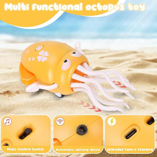 Dancing Octopus Baby Toy, Tummy Time Toys, with Music and Led Light, Automatically Avoids Obstacles, Crawling Toy Suitable for Birthday Gifts for Toddlers Over One Month Old(Yellow)