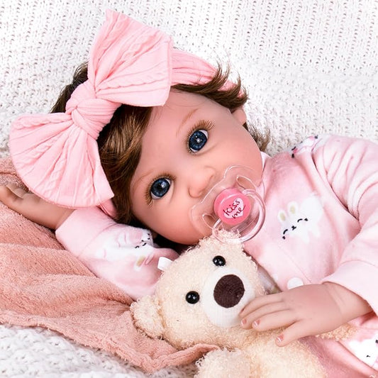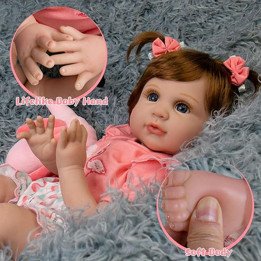 Lifelike Reborn Baby Dolls, 22-Inch Soft Cloth Body Realistic Baby Dolls with Clothes and Toy Accessories - Birthday Gift for Kids 3+