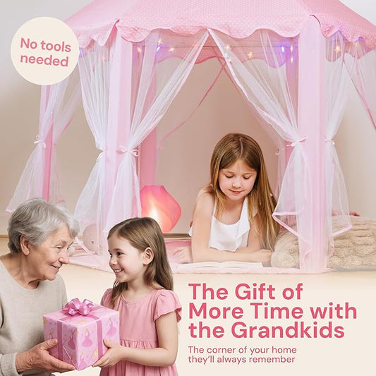 PLAYVIBE Princess Tent - 55 x 53 in Indoor Playhouse - Kids Tent with Starry LED Lights & Toddler Playhouse