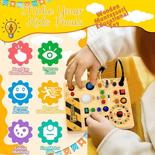 Montessori Toddler Busy Board Sensory Toys for Toddlers Wooden Autism Sensory Toy, Toddler Switch Board with 17 LED Lights for Kids 1-6 Year Olds to Develop Fine Motor Skills.