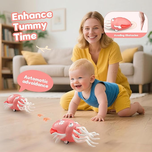 Dancing Octopus Baby Toy: Tummy Time Toys Electric Crawling Squid 3 4 5 6 7 8 9 10 11 12 Year Old Boy Learning Walking 3-6 Toddler Age 36 Months Music Development Kids Girl 1st Birthday Gifts (Pink)