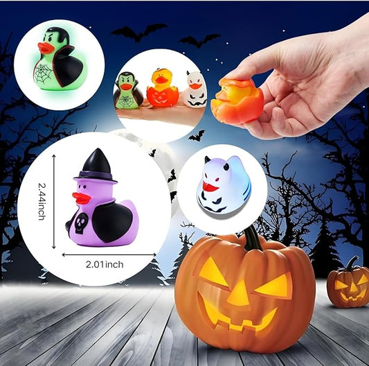12PCS Halloween Light up Rubber Duck Glow in The Dark Pumpkin Skeleton Spider Bat Witch Duck Bathtub Toy for Kid Halloween Party Favor