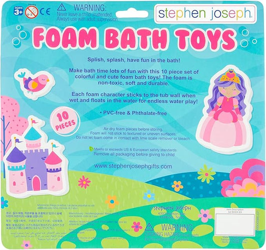 Stephen Joseph, Floating Foam Bath Character 10-Piece Toy Set, Princess (SJ1148), Small