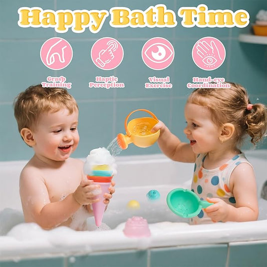 Baby Bath Toys for Kids Ages 1-3 6 PCS Ice Cream Toddler Bath Toys Mold Free Bathtub Beach Sand Pool Water Toys for 1 2 3 4 5 6 Years Old Girls Boys Gifts