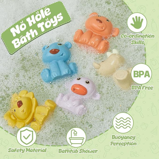 Bath Toys, 9 Pack | Sealed, No Hole & Mold Free Bath Toys Design | Soft, Squeezable & Float on Water | Safe & Non-Toxic Easy-Grip Baby & Toddler Bath Toy Set | Baby Pool Toys