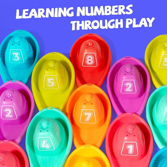 Nueplay Bathtub Toys for Toddlers 18M+,Baby Bath Toys with Animal Finger Puppets, Stackable Boat Train ,Gift for Baby & Toddlers Set of 12