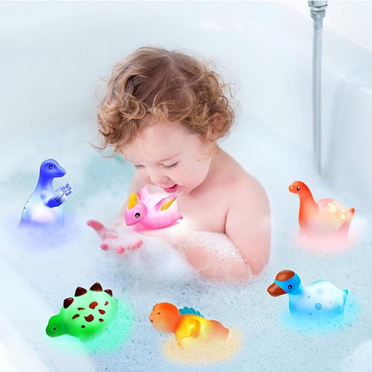 Bath Toys for Toddlers 1-3: 6 Packs Light-Up Floating Dinosaur Baby Toddler Bath Toys Set for Boys Kids Easter Christmas Birthday Gifts - Water Bathtub Shower Pool Bath Toy for Children Preschool