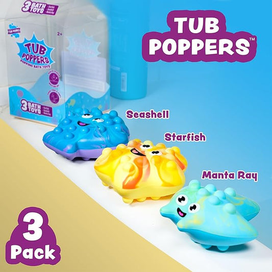 Tub Works® Tub Poppers™ Popping Kids & Toddler Bath Toys, 3 Pack | Push, Poke, Squish & Pop it Fidget Toys for The Bathtub | Irresistible Bubbles with Satisfying 'Pops' | Multi Sensory Kids Bath Toys
