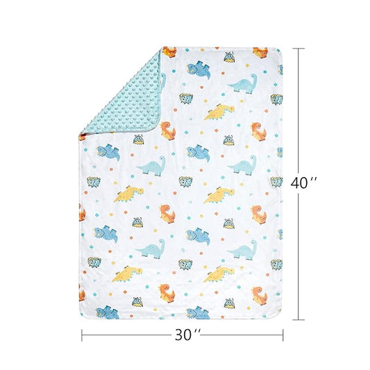 DaysU Silky Micro Soft Plush Baby Blankets for Boys with Print Animal Pattern and Soothing Raised Dots, Double Layer Bed Throws for Baby Crib, Dinosaur, Aqua Blue, 30x40 Inches
