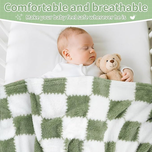 Checkered Baby Blanket for Boys Girls, 2 Pack Soft Baby Boy Girl Blankets, Small 28 x 40 inches Toddler Fleece Blanket, Essentials Crib Stroller Items, Newborn Gift (Green)
