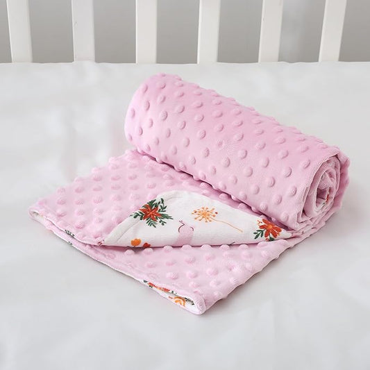 DaysU Silky Micro Soft Plush Baby Blankets for Girls with Print Pattern and Soothing Raised Dots, Double Layer Bed Throws for Baby Crib, Flower, Pink, 30x40 Inches