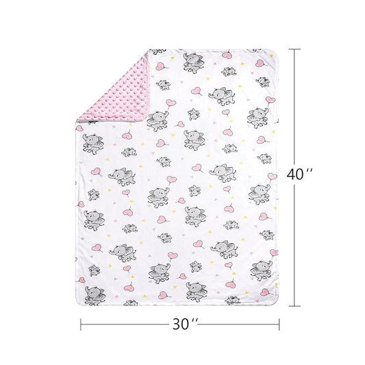 DaysU Silky Micro Soft Plush Baby Blankets for Girls with Print Animal Pattern and Soothing Raised Dots, Double Layer Bed Throws for Baby Crib, Elephant, Pink, 30x40 Inches