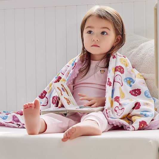 DaysU Silky Micro Soft Plush Baby Blankets for Girls with Print Floral Pattern and Soothing Raised Dots, Double Layer Bed Throws for Toddler Cot, Blossom, Pink, 50x60 Inches