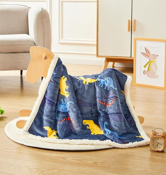 DaysU Silky Micro Soft Plush Baby Blankets for Boys with Print Animal Pattern and Soothing Raised Dots, Double Layer Bed Throws for Toddler Cot, Dinosaur, Aqua Blue, 50x60 Inches