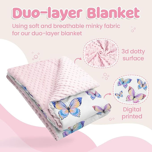 SANDJEST Kid Blankets for Girls 30 x 40 - Kids Throw Minky Blankets with Layer Dotted Backing - Gifts for Birthday Nursery Room Decor